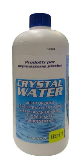 Grazie alla sua formula multifunzionale e concentrata Cristal Water, risolve e previene tutte le problematiche relative alla trasparenza, purezza dell'acqua con l'impiego di un unico prodotto. Sanificante concentrato e sequestrante attivo contro sali di Calcio, Magnesio e metalli (Ferro e Manganese) con funzione flocculante