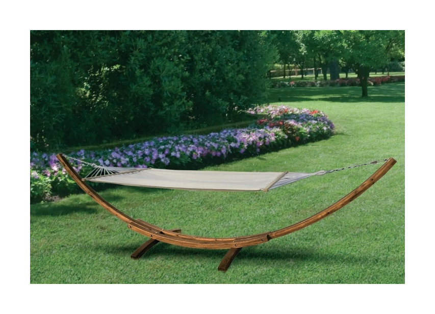 Amaca in cotone colore beige ? Supporto in legno di larice verniciato finitura color teak