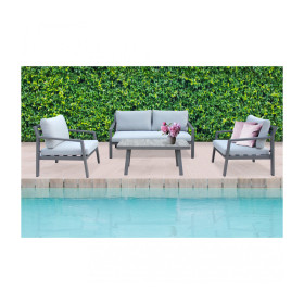 Immagina di rilassarti sotto il cielo azzurro, sorseggiando una bevanda fresca, mentre il calore del sole avvolge il tuo giardino o terrazzo. Questo set salotto da esterno è stato progettato per offrirti l'esperienza di comfort e stile che meriti. La struttura in alluminio verniciato antracite è resistente e leggera, perfetta per ogni condizione atmosferica, ma con un design moderno che si adatta perfettamente a qualsiasi ambiente. Il colore antracite aggiunge un tocco elegante e senza tempo, rendendo il set il punto focale del tuo spazio esterno. ??