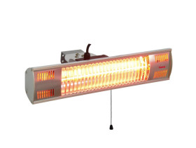 Stufa alogena a parete per uso esterno e interno, ad infrarossi, idonea al riscadamento istantaneo aree circoscritte. Resistenza alogena golden 1500W alta resa termica e bassa intensità luminosa. Corpo in Al estruso, e parti strutturali in Al o inox. Parabola riflettete c.finitura a specchio. Interruttore 0/I a tirante. Supporto murale c. regolazioni alto/basso 90° con kit fissaggio parete. Classe protezione IP55 (protezione agli spruzzi d'acqua). Idonea per ambienti di 45m³. 220-240V~50Hz 1500W.