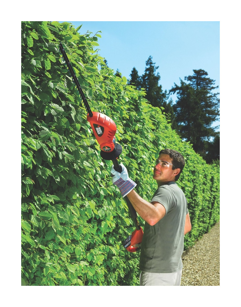Descrizione generale Tagliasiepi con asta prolunga e testa orientabile 5 posizioni fino a 180° ideale per la regolazione delle siepi e piante ornamentali senza l'utilizzo di scale. Confortevole e sicuro e dal peso ottimamente bilanciato è dotato di doppio interruttore di sicurezza per l'avviamento
