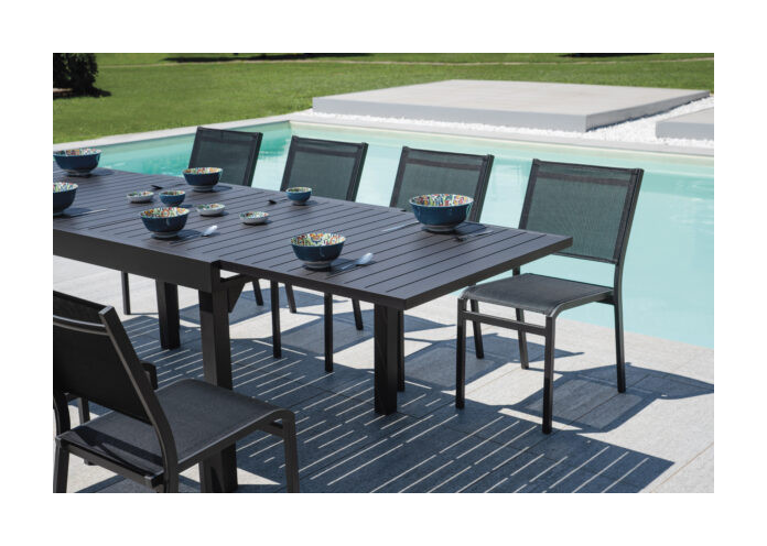 Sedia POLA alluminio ANTRACITE e textilene NERO senza braccioli impilabile Greenwood codice CHA 01G