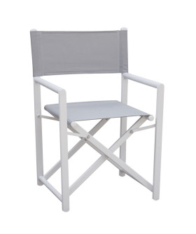Sedia pieghevole da regista PAROS in alluminio BIANCO e textilene GRIGIO CHIARO COD. CHA 04B