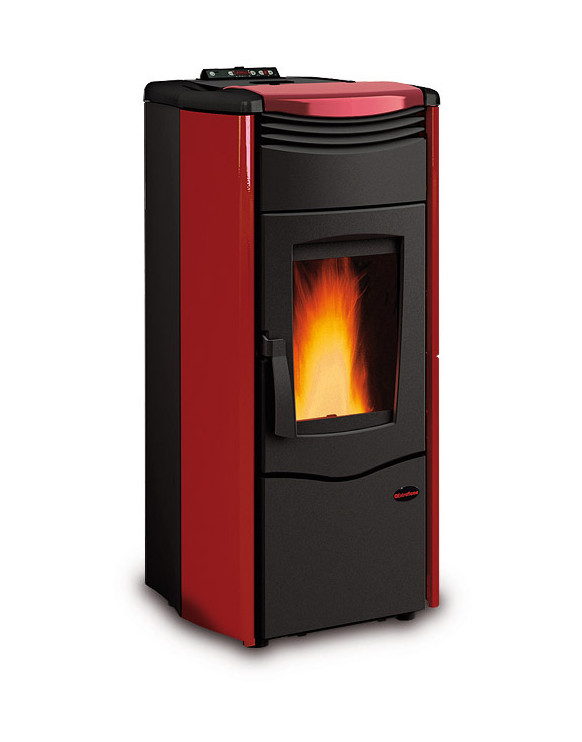 Stufa a Pellet Melinda Steel Idro Rivestimento in Acciaio Verniciato e Top in Maiolica Potenza Termica Nominale 14 KW Colore Bordeaux