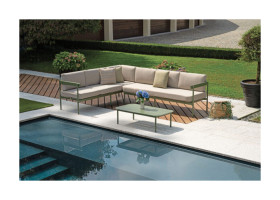 Salotto da giardino angolare in alluminio VERDE SET TORVAIANICA da 2 divani e 1 tavolino con piano a doghe