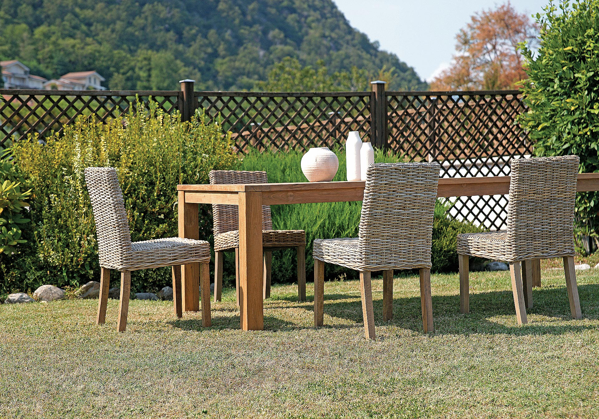 La struttura solida garantisce robustezza e durata nel tempo, mentre la fibra intrecciata è resistente all’umidità, facile da pulire e mantiene inalterato il suo aspetto naturale senza necessità di trattamenti specifici. Lo schienale ergonomico favorisce una postura corretta, rendendo la sedia adatta sia a momenti conviviali che a un utilizzo prolungato.
