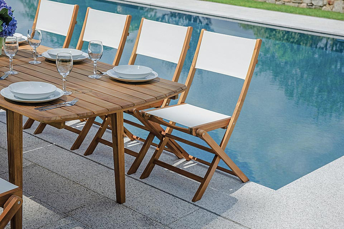 Il set di 2 sedie Pietrasanta in acacia pieghevole con braccioli è la scelta ideale per chi cerca una seduta confortevole, robusta e salvaspazio, capace di arredare con eleganza e funzionalità qualsiasi spazio esterno.