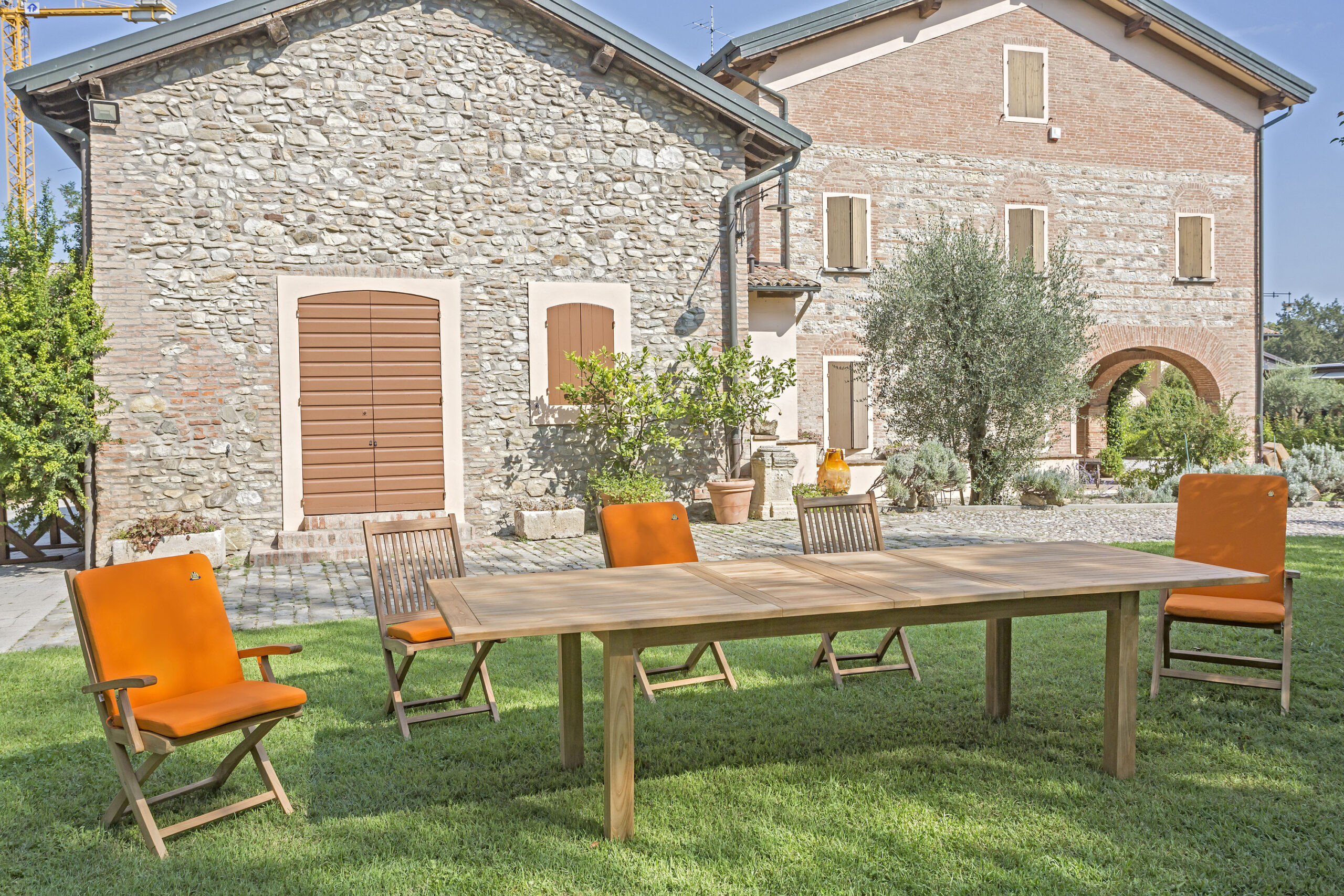 Il legno teak è inoltre caratterizzato da un profumo che ricorda il cuoio invecchiato e da una superficie liscia al tatto, simile alla cera. Il suo caldo colore naturale dona al tavolo giorgia un aspetto elegante e senza tempo, perfetto sia per ambienti esterni dallo stile classico ed elegante, sia come continuità degli spazi interni in contesti più moderni.