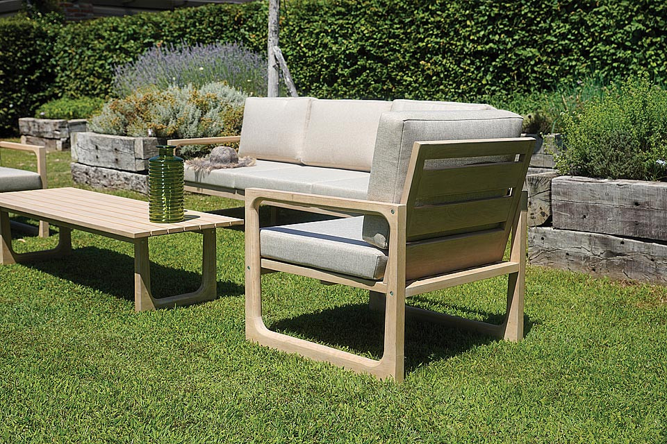 Divano, tavolino, soffici cuscini e pouf poggiapiedi. greenwood ha tutto ciò che occorre per uno spazio outdoor organizzato come si deve.