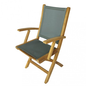 La struttura è realizzata in legno massello di teak, materiale naturalmente resistente agli agenti atmosferici e particolarmente indicato per l’uso outdoor. La seduta e lo schienale in textilene assicurano comfort, traspirabilità e facilità di manutenzione, anche in caso di utilizzo intensivo. I braccioli integrati migliorano l’ergonomia e il comfort di seduta, mentre la funzione pieghevole consente di riporre e spostare la poltrona con estrema praticità.
