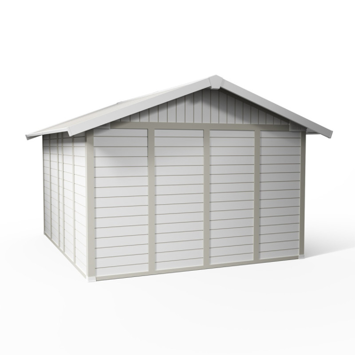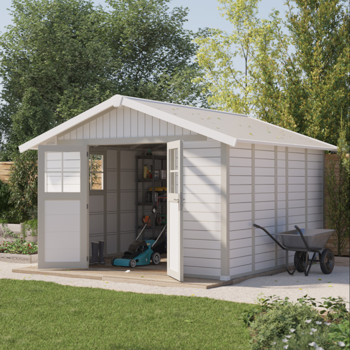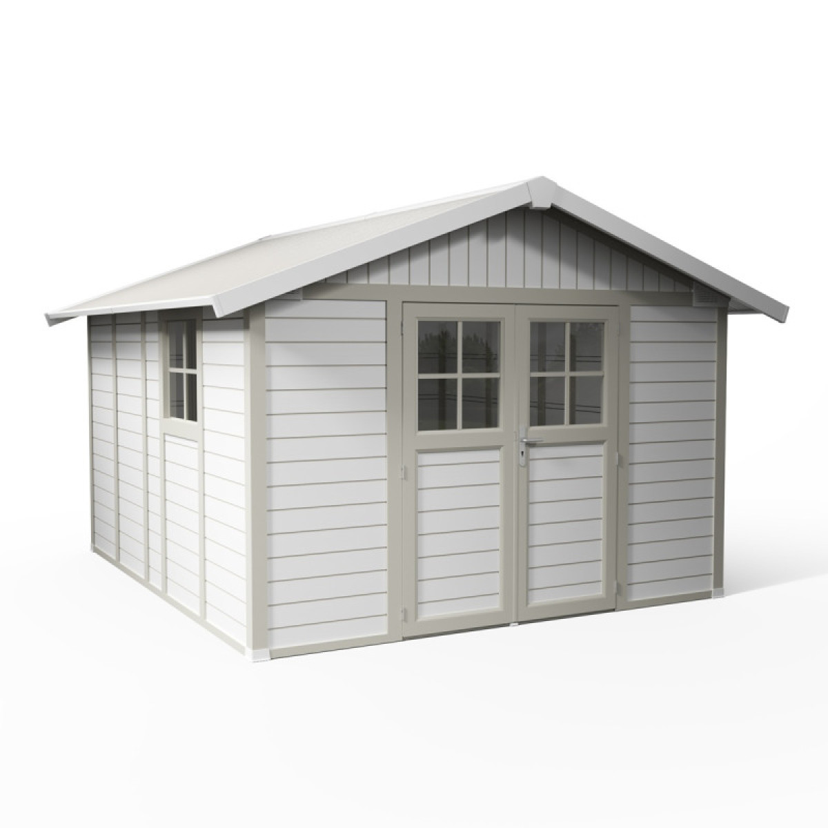 Perfetta come capanno porta attrezzi, pool house, cucina estiva o piccolo spazio di relax, questa casetta in PVC di alta qualità è progettata per durare nel tempo e valorizzare il tuo giardino con stile.