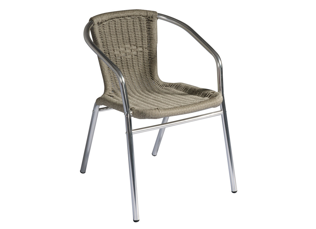 La struttura in alluminio garantisce leggerezza, resistenza agli agenti atmosferici e facilità di movimentazione, mentre la seduta in tubo e filo plastificato con anima interna in acciaio assicura robustezza e comfort.
