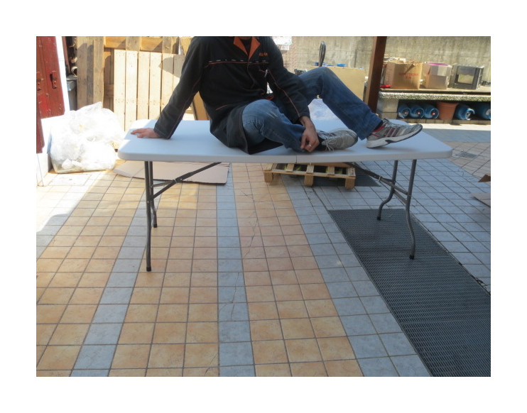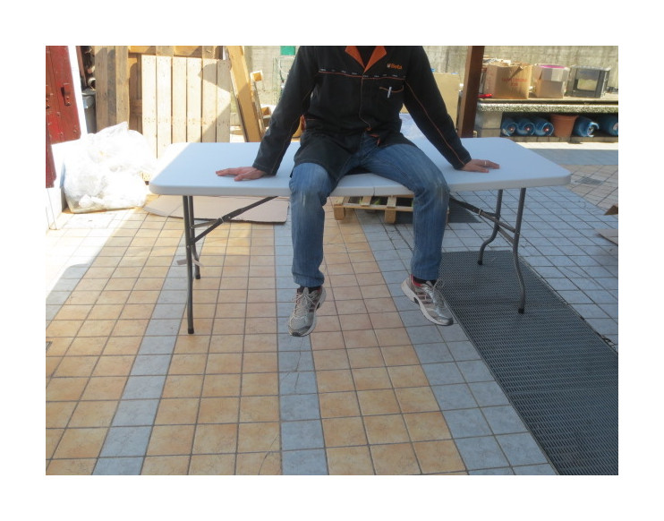 Nella foto vi faccio vedere che io che peso 80 kg, siedo tranquillamente nel tavolo e vi dimostro che sono forti e resistenti, non sono i classici tavoli che trovate su internet. Fidatevi , ottimo prodotto.