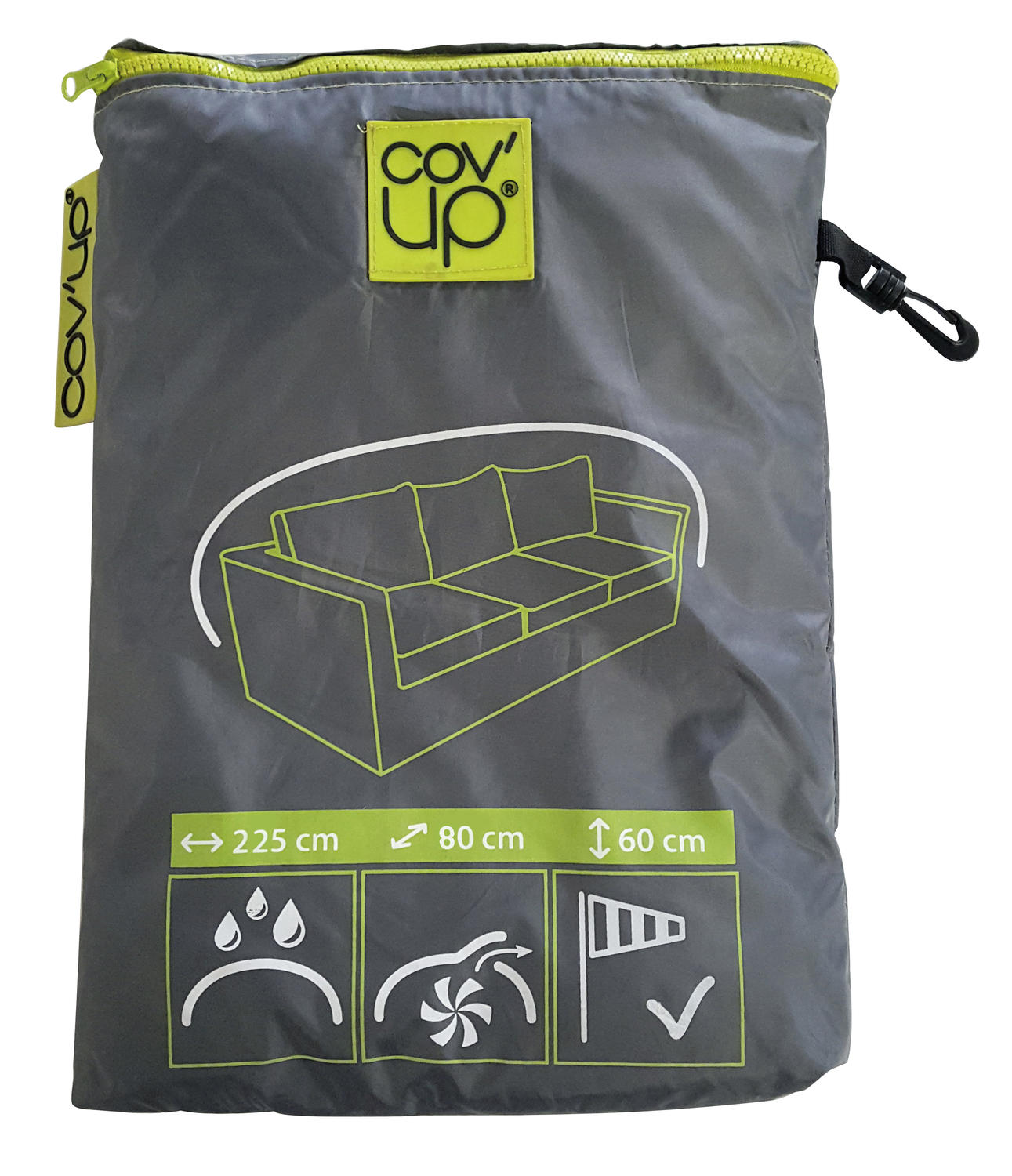 Cover per Divano 3 posti fino a 225x80 cm in poliestere impermeabile ed extra-resistente. Con prese d'aria e distanziale. In carton box da 6 pz.