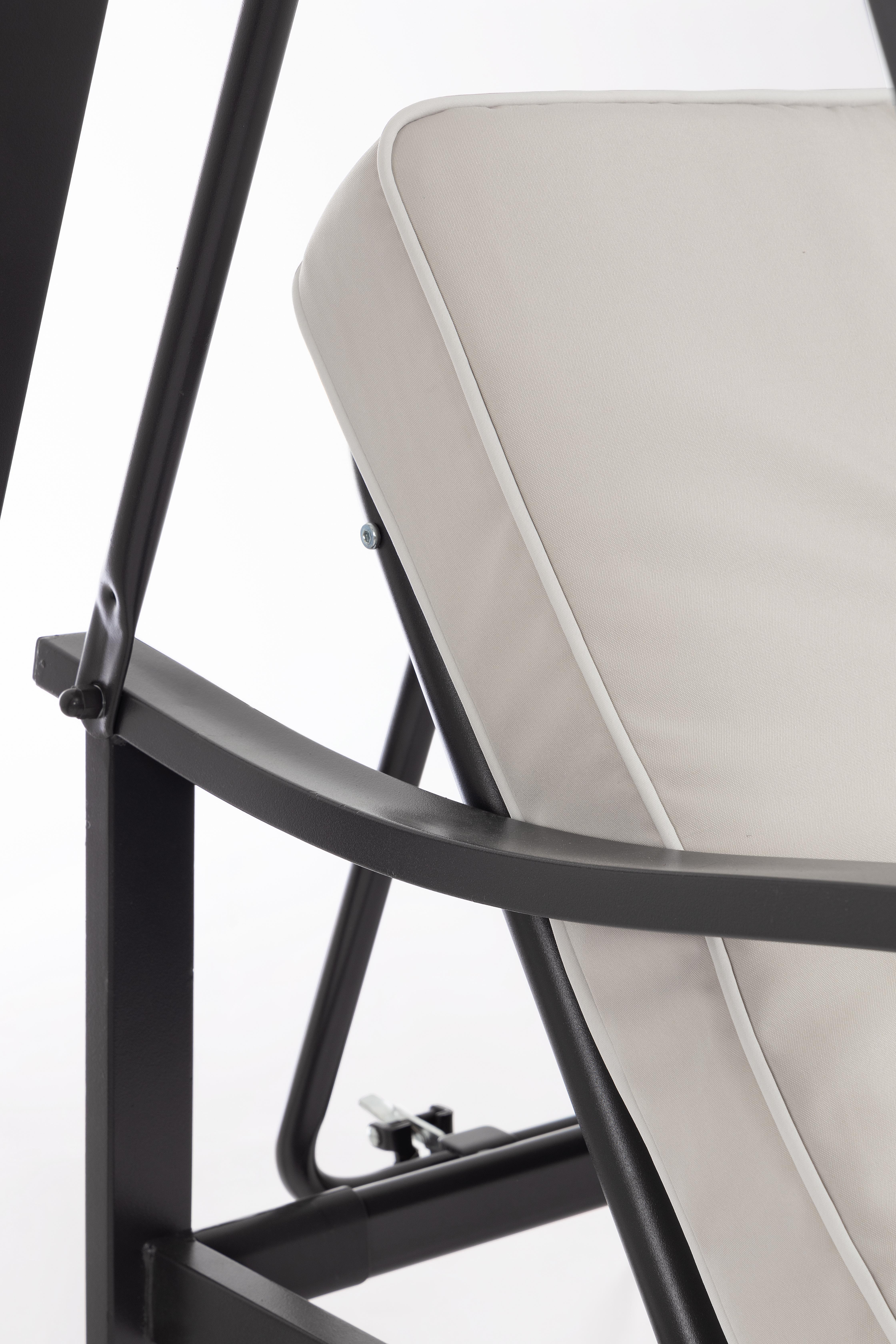 Grazie allo schienale ribaltabile, il dondolo si trasforma facilmente in un pratico letto da esterno: