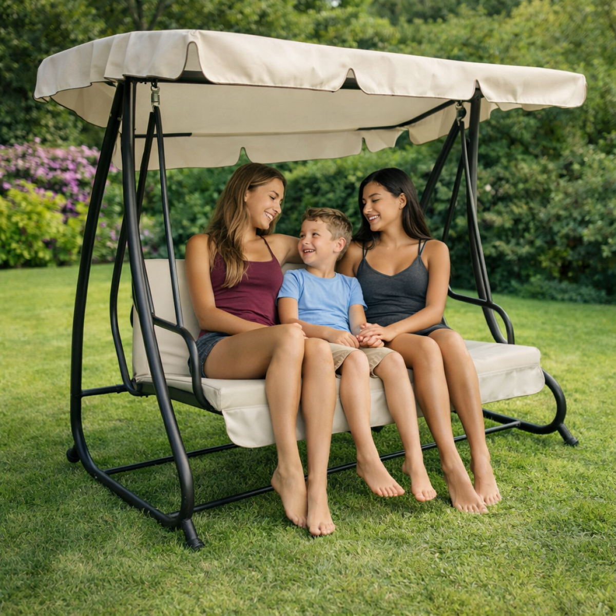 Il meccanismo reclinabile consente di passare rapidamente dalla posizione seduta a quella completamente distesa. Questa versatilità rende il dondolo perfetto sia per momenti conviviali sia per il relax individuale.