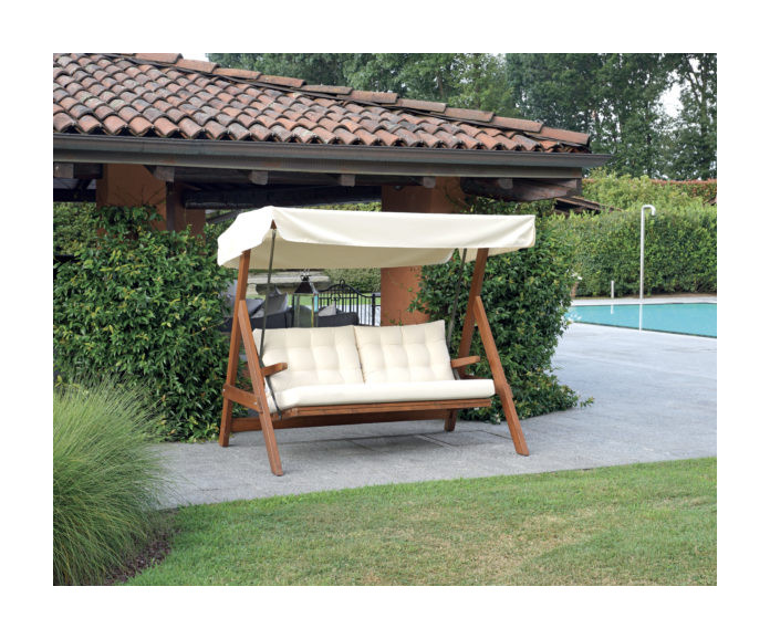 Dondolo in legno massiccio 3 posti con tessuto ecru cod SV 122