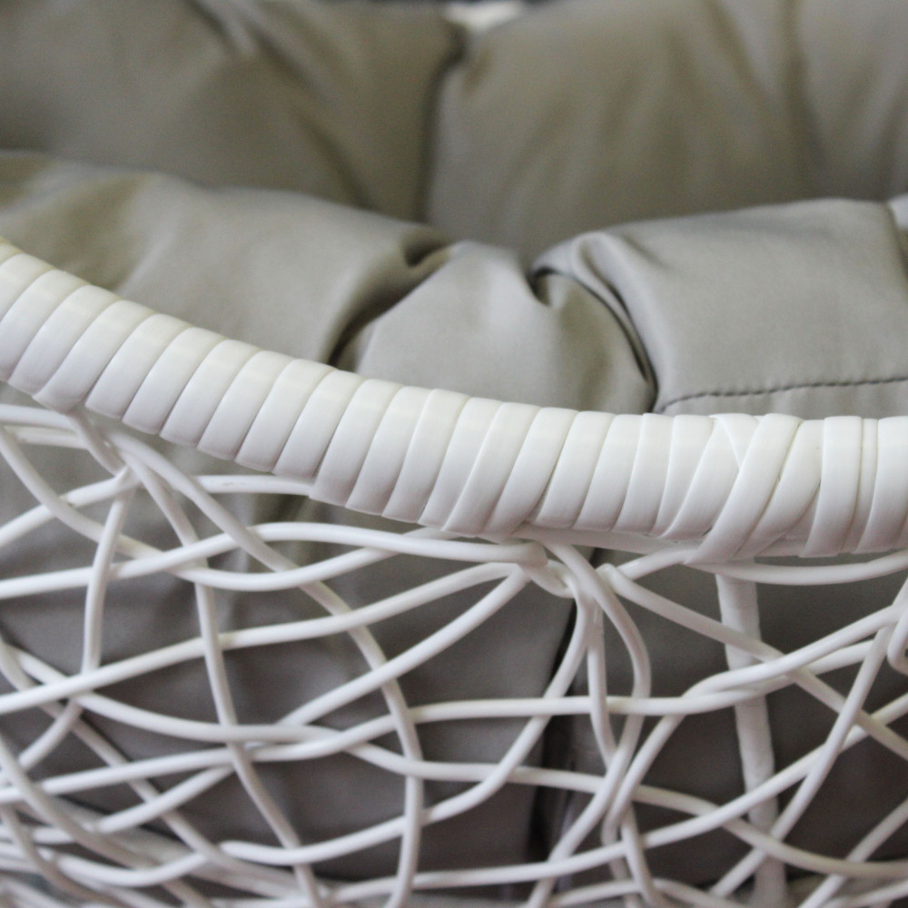 Le linee eleganti e la lavorazione in wicker bianco rendono questo dondolo un complemento d’arredo capace di valorizzare qualsiasi spazio esterno.