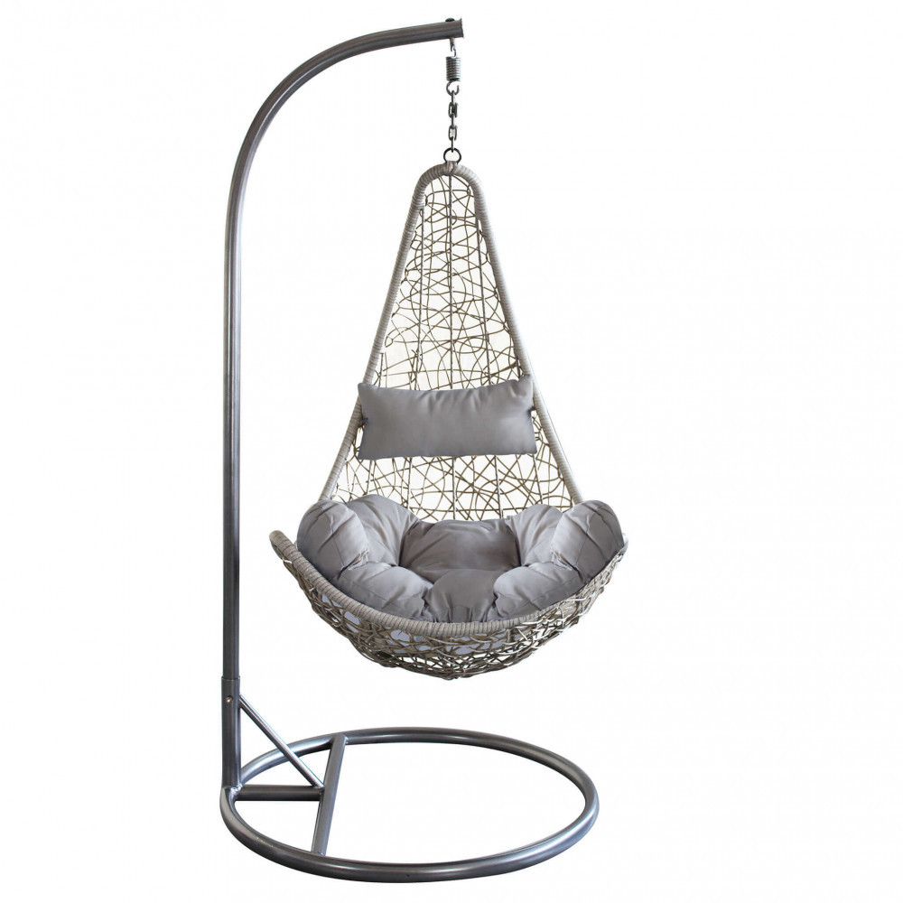 Dondolo da giardino PONZA grigio con struttura in acciaio e wicker intrecciato, adatto a tutti gli ambienti interni ed esterni