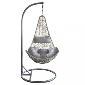 Le linee eleganti e la lavorazione in wicker grigio rendono questo dondolo un complemento d’arredo capace di valorizzare qualsiasi spazio esterno.