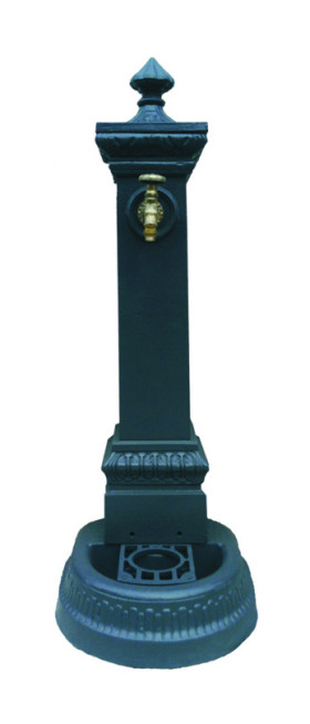 Fontana da giardino a pavimento PAPILLON modello STIRIA, realizzata interamente in ghisa con elegante finitura opaca color antracite. Un elemento d’arredo robusto e raffinato, ideale per valorizzare giardini, cortili, vialetti e spazi esterni in stile classico o rustico.