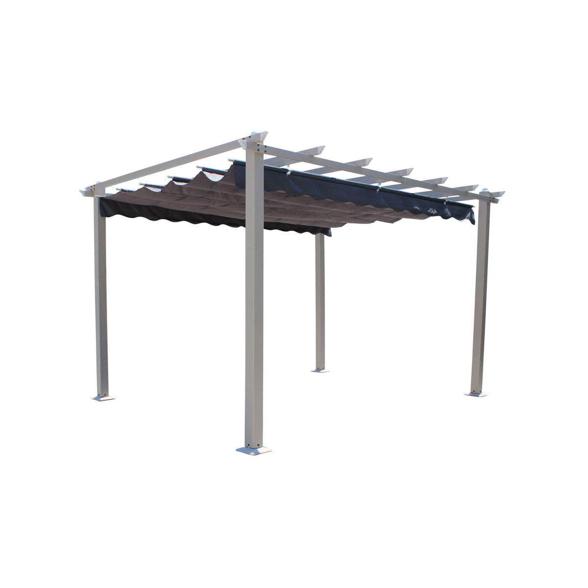 Colore della struttura tortora lucido La copertura è scorrevole in modo da poter essere chiusa in caso di vento forte oppure durante l'inverno quando non si utilizza il gazebo