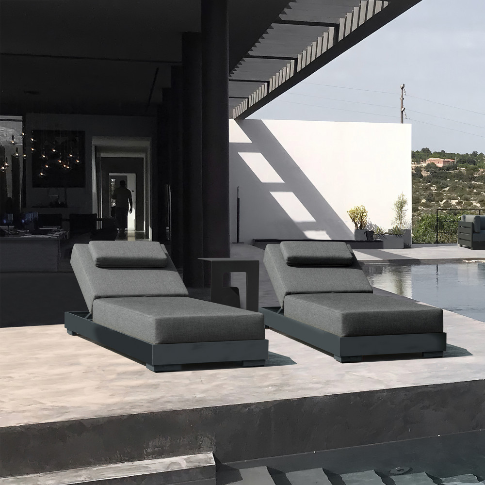 Lettino da giardino BOA VISTA in alluminio antracite verniciato a polvere, ideale per passare una giornata di completo relax nel proprio giardino