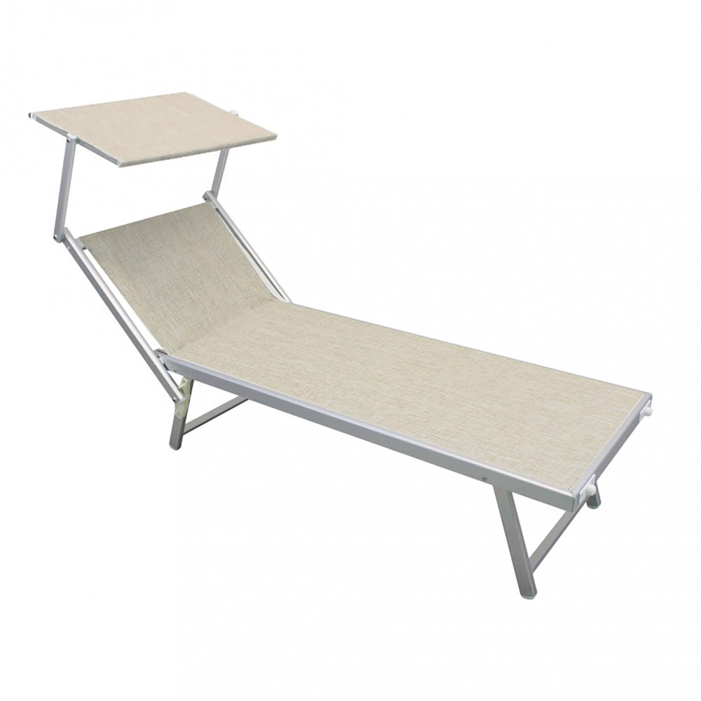 Lettino prendisole da giardino JESOLO beige in alluminio, dotato di tettuccio permette di godersi una splendida giornata di rilassamento nel proprio giardino