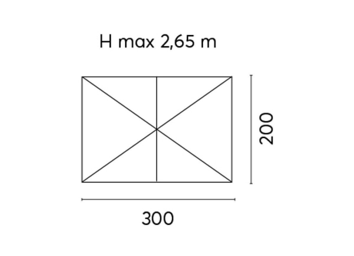 Con dimensioni di 3 x 2 metri e un’altezza massima di 265 cm con base, questo ombrellone è perfetto per coprire tavoli da giardino, set da pranzo outdoor o zone relax, creando un ambiente ombreggiato e confortevole.