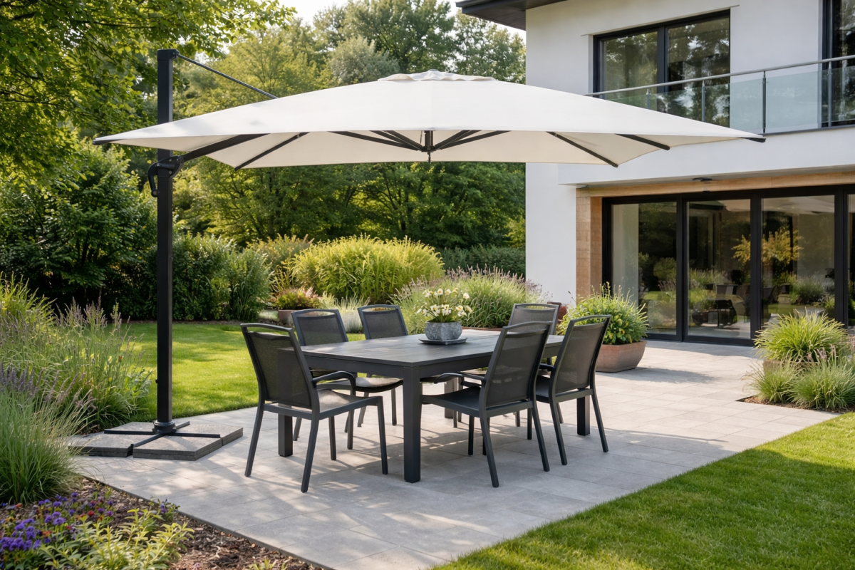 L’ombrellone da giardino GORIZIA 4×4 m è una soluzione elegante e funzionale per la copertura di ampi spazi esterni, ideale per giardini, terrazze, dehors, bar e aree hospitality. Grazie al palo laterale decentrato consente di sfruttare al massimo lo spazio sottostante, garantendo libertà di movimento e massima vivibilità dell’area ombreggiata.