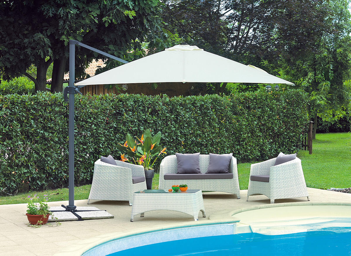 Il giusto ombrellone da giardino deve offrire sicurezza, flessibilità d'uso e design. Tutta la nostra gamma risponde a queste semplici ma essenziali esigenze. Sicurezza di poter essere al riparo dai raggi UV pericolosi per la pelle e la propria salute soprattutto durante le giornate di caldo intenso. Flessibilità d'uso sia nel giardino di casa sia nelle terrazze di bar e strutture ricettive. Design curato e raffinato grazie alle differenti finiture impiegate nella realizzazione dei teli.