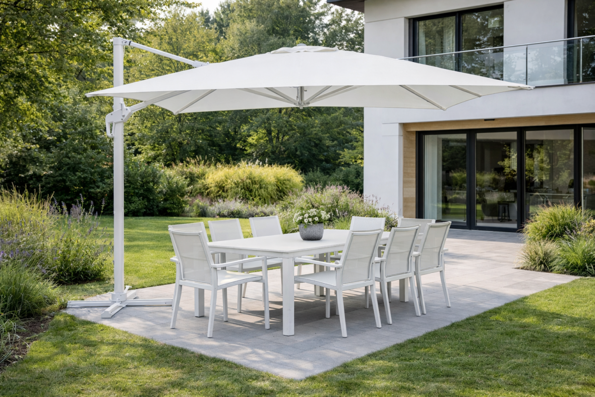 L’ombrellone COLORADO 3×3 è una soluzione elegante e funzionale per l’arredo di spazi outdoor residenziali e professionali. Il palo laterale in alluminio verniciato bianco consente di sfruttare al massimo l’area sottostante, garantendo comfort e libertà di movimento sotto la zona d’ombra.