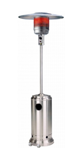 Alimentazione con bombola da 15kg di GPL o a gas Butano, ha una potenza regolabile da 4,5 a 11,5 kW ed è caratterizzata dal corpo centrale e dal vano bombola in acciaio. E? dotata di bruciatore in acciaio inossidabile e da un cappello riflettente di alluminio componibile da 813mm. E? fornita di ruote per agevolare lo spostamento, di base con tanica da riempire per garantire la necessaria stabilità, e da una copertura di materiale sintetico per la protezione durante il rimessaggio.