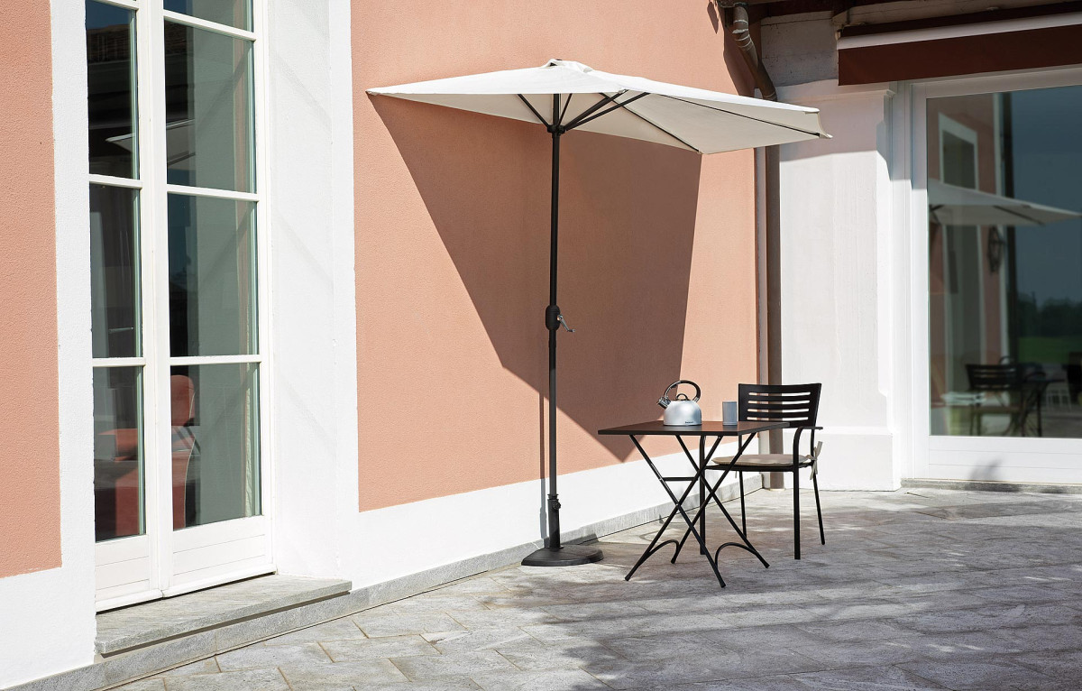L’ombrellone da giardino Greenwood mezzo rotondo E 5036 è la soluzione ideale per creare una piacevole zona d’ombra in spazi esterni ridotti come balconi, terrazze e angoli di giardino. La sua forma semicircolare (mezzaluna) consente l’installazione a ridosso di una parete, ottimizzando lo spazio disponibile senza rinunciare a funzionalità e comfort.