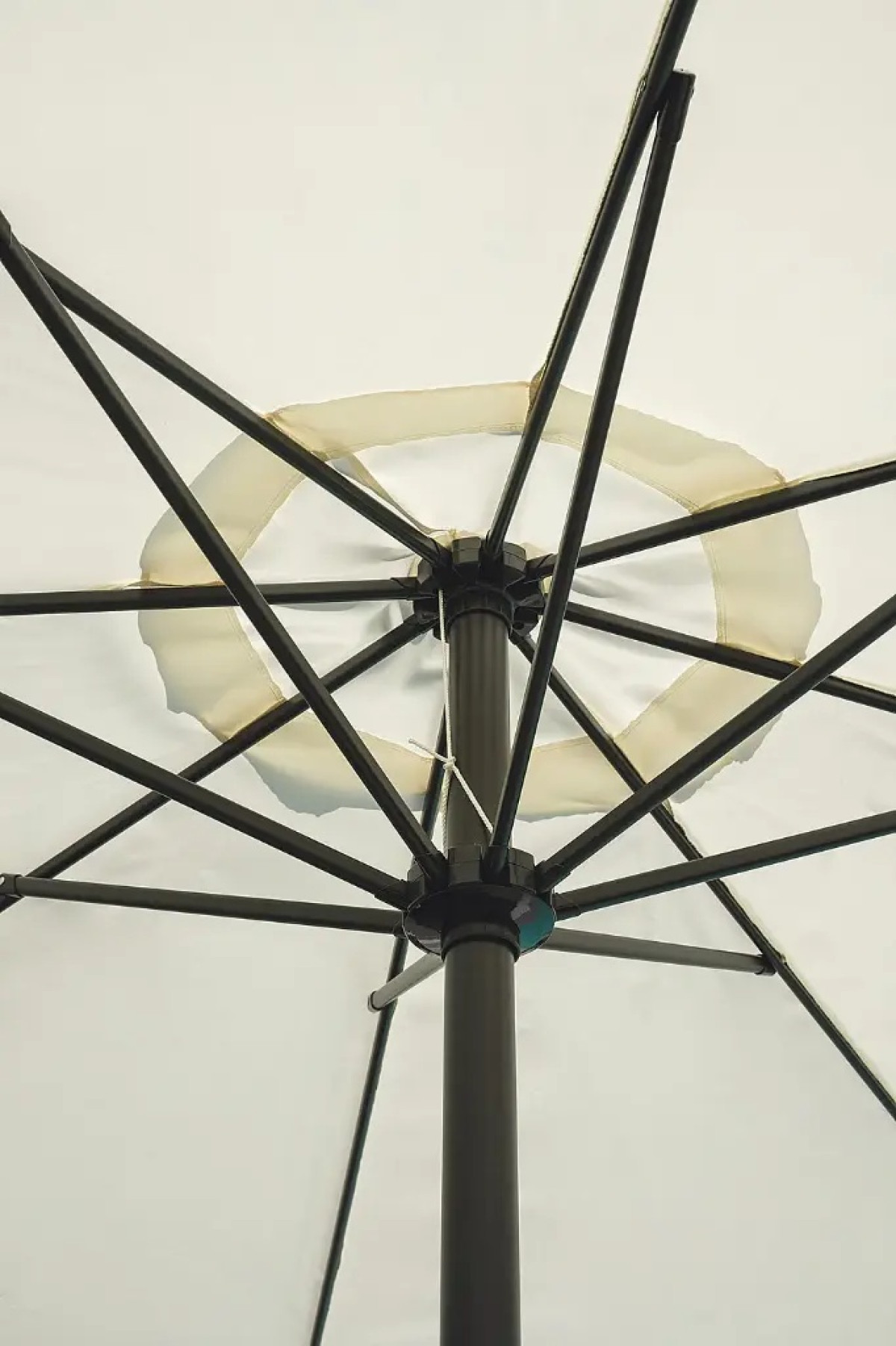 La struttura con palo centrale in alluminio Ø 48 mm, con finitura antracite, assicura solidità e resistenza agli agenti atmosferici. Il meccanismo di apertura a manovella permette di aprire e chiudere l’ombrellone in modo semplice e veloce, garantendo massima praticità d’uso.