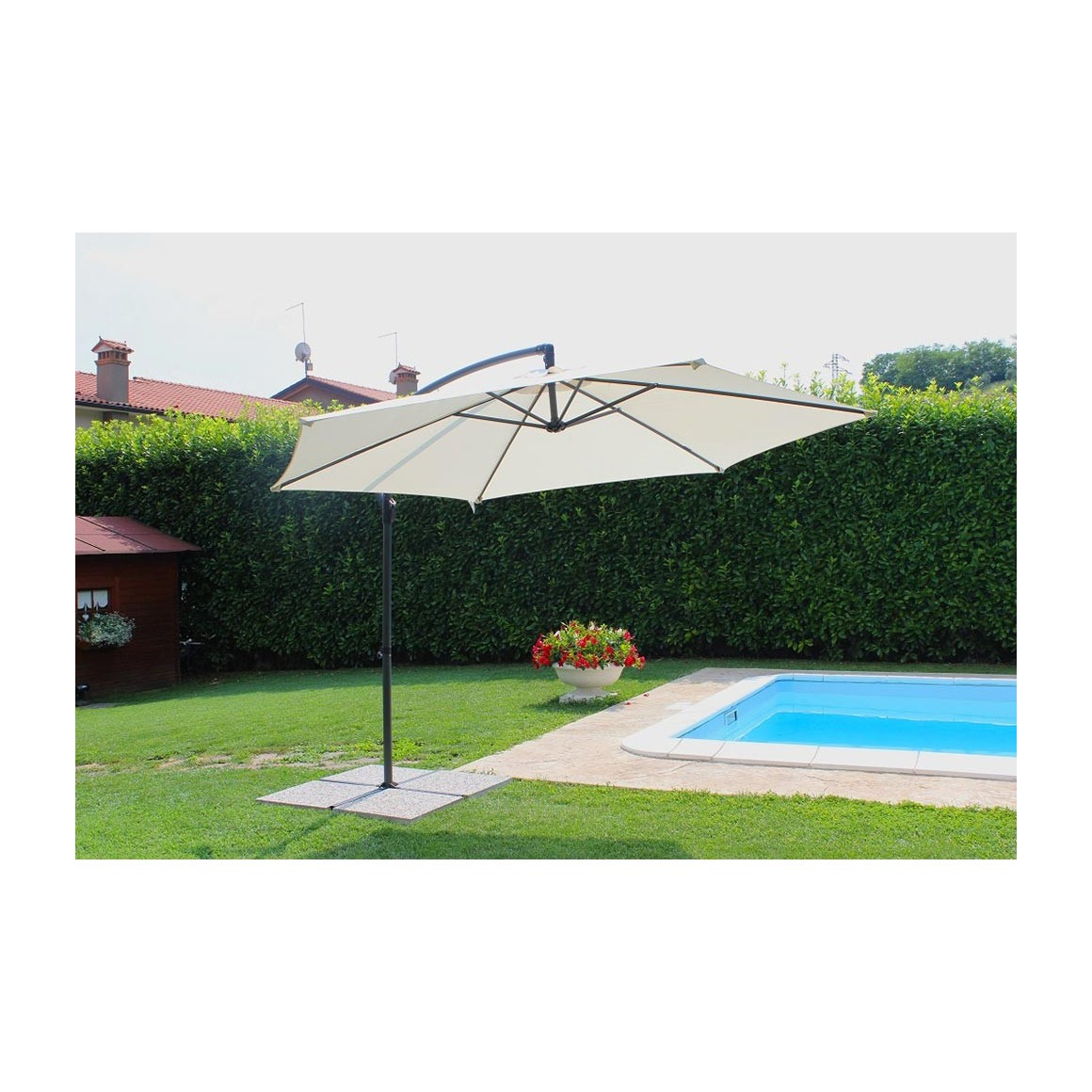 L’ombrellone è dotato di base a crociera, che richiede 4 piastre di zavorra non incluse per garantire una corretta stabilità durante l’utilizzo.
