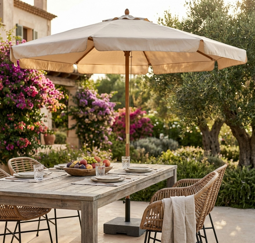 Telo in poliestere BEIGE 270 gr palo in legno Ø 48 mm x 240 cm 8 stecche 20 x 28 mm intercambiabili Dimensioni: m Ø 3