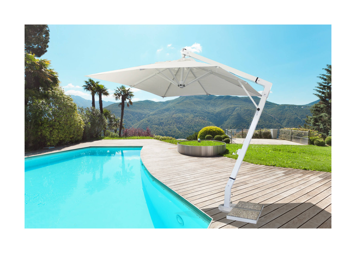 Ombrellone da giardino PROFESSIONALE TRIESTE DELUXE in alluminio bianco misura 3 x 3 palo laterale