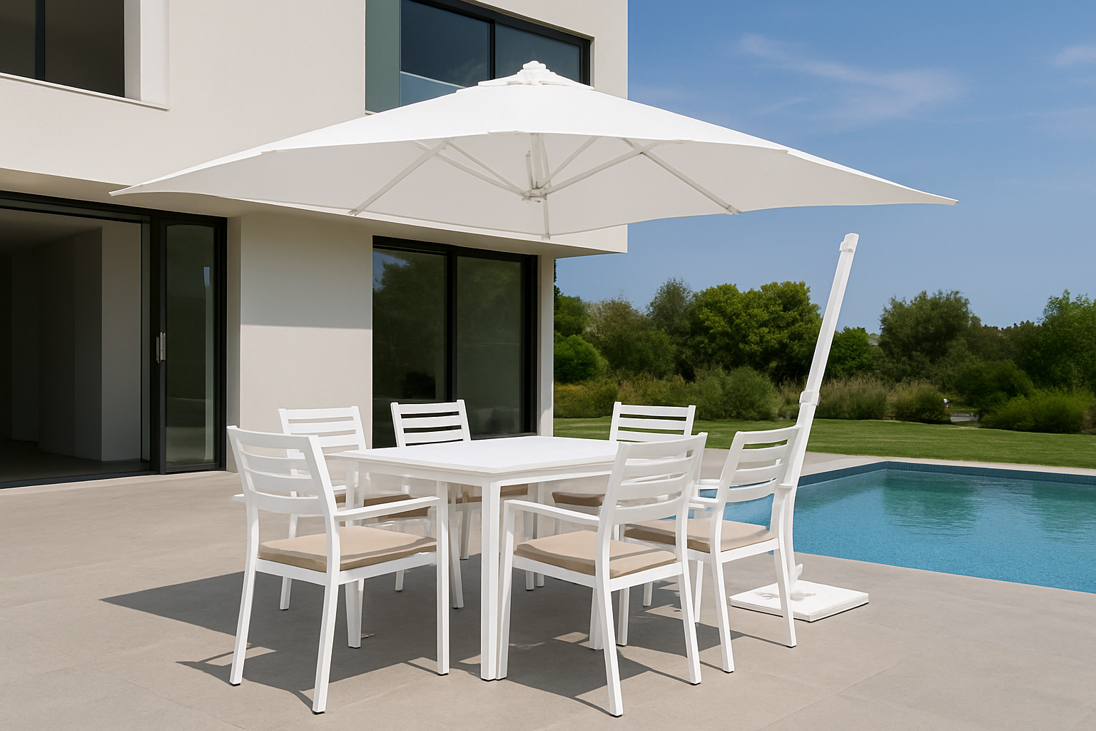 L’ombrellone PEGASOS 3x3 con braccio laterale è la scelta perfetta per chi cerca qualità, stabilità e stile, con una copertura versatile capace di valorizzare qualsiasi ambiente esterno.