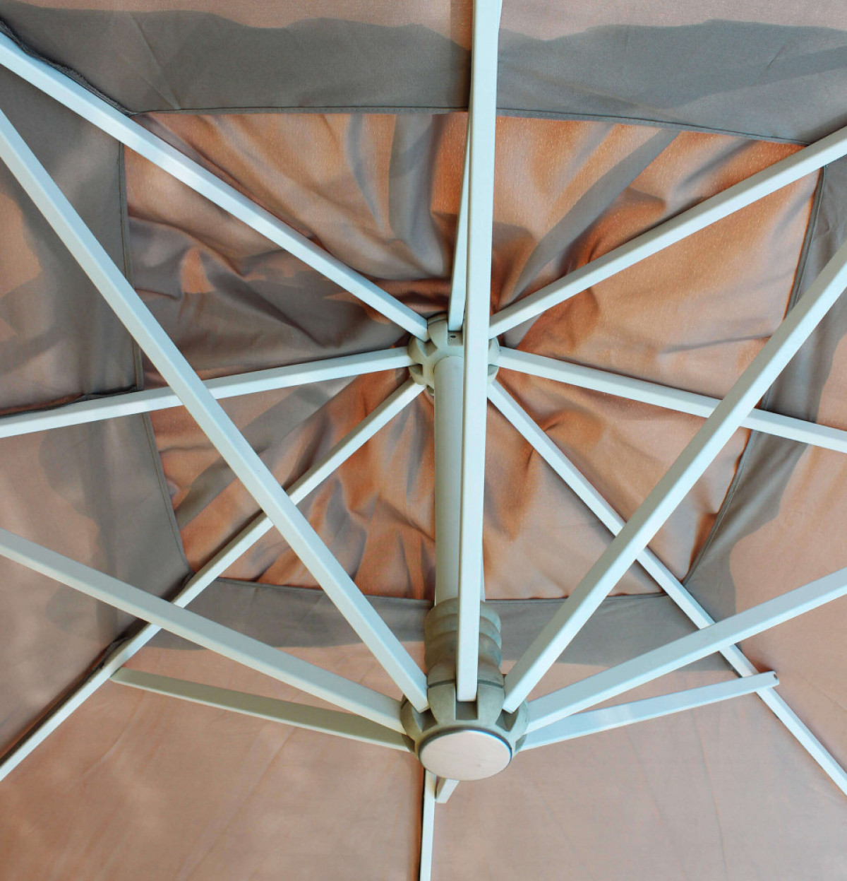 Il palo laterale decentrato consente di sfruttare al meglio lo spazio sottostante, offrendo una copertura ampia e libera da ingombri centrali. Grazie alla base rotante e al telo orientabile fino a 20°, l’ombrellone assicura un’ombreggiatura ottimale in ogni momento della giornata.