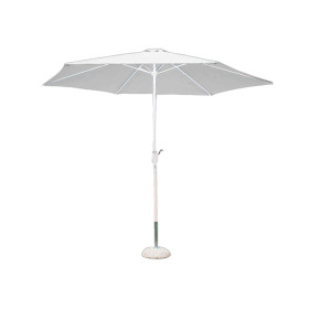 Con un telo in poliestere da 180g/m2, l?ombrellone, forma: rotonda (diametro: 3m), modello: è perfetto per ombreggiare in modo efficace la vostra terrazza. Grazie al suo palo dritto centrale in alluminio, offre uno stile senza tempo e naturale al tempo stesso. Il sistema di apertura è manuale. Si manipola facilmente grazie alla sua puleggia. Una cordicella consente di aprire e chiudere l?ombrellone. Da aperto, l?ombrellone è bloccato grazie a un'asta in metallo. Il telo è dotato di una pensilina sulla parte superiore. La pensilina permette all'aria di circolare ed evita al tempo stesso che l?ombrellone imbarchi troppo vento in caso di una leggera brezza.