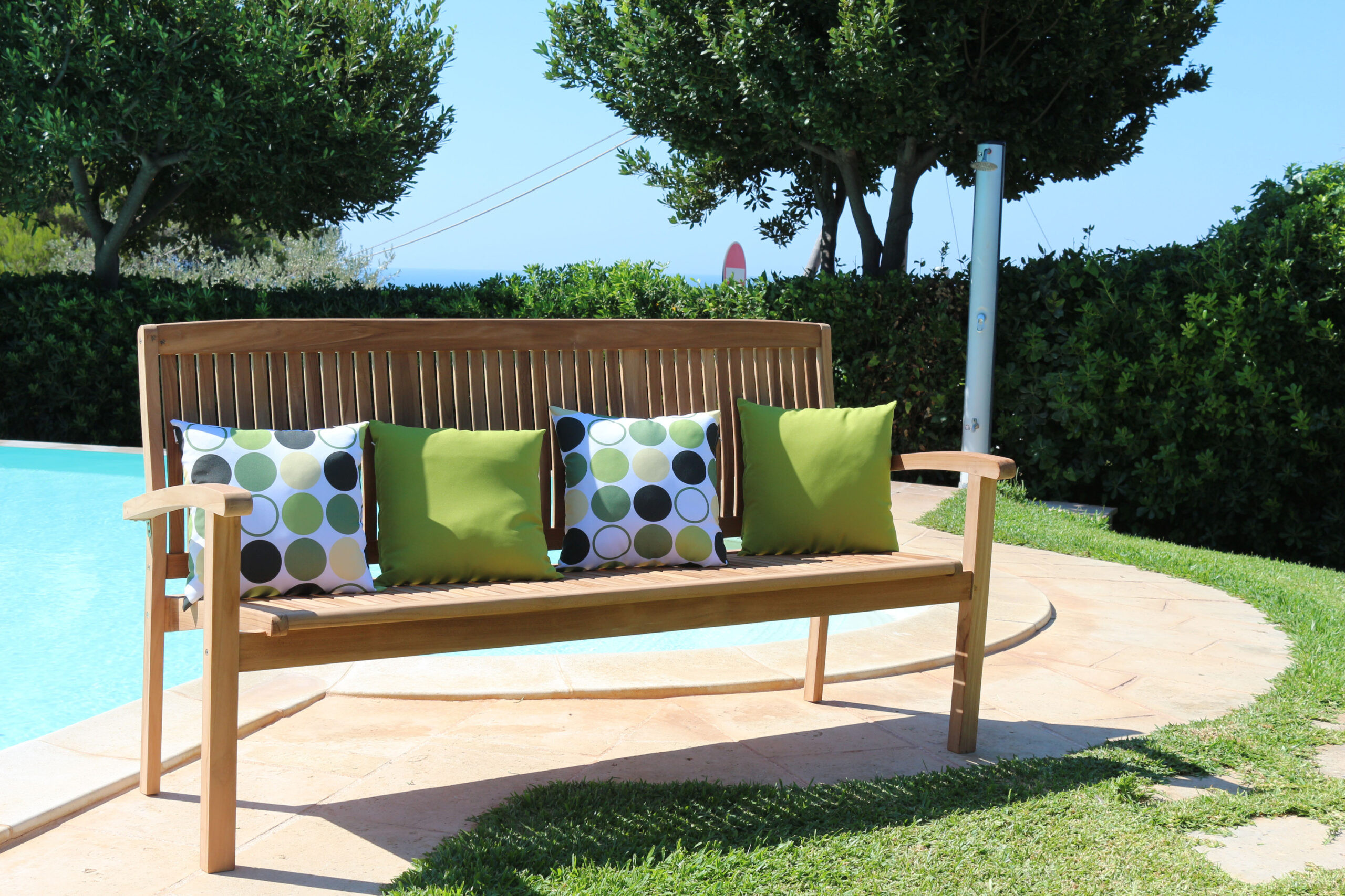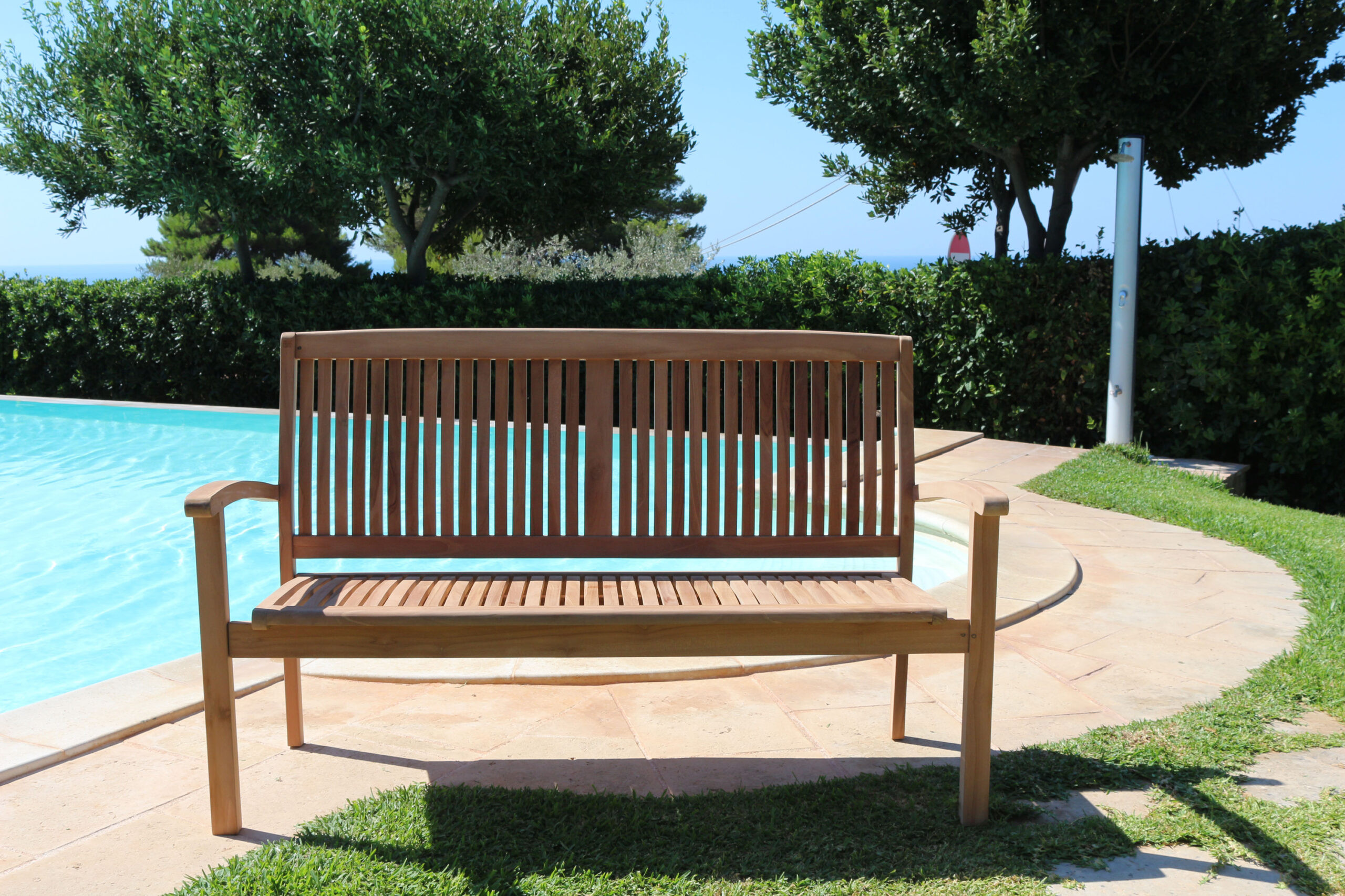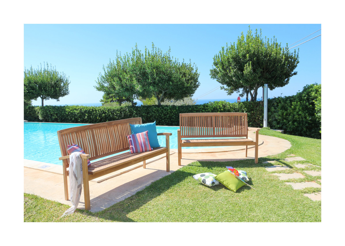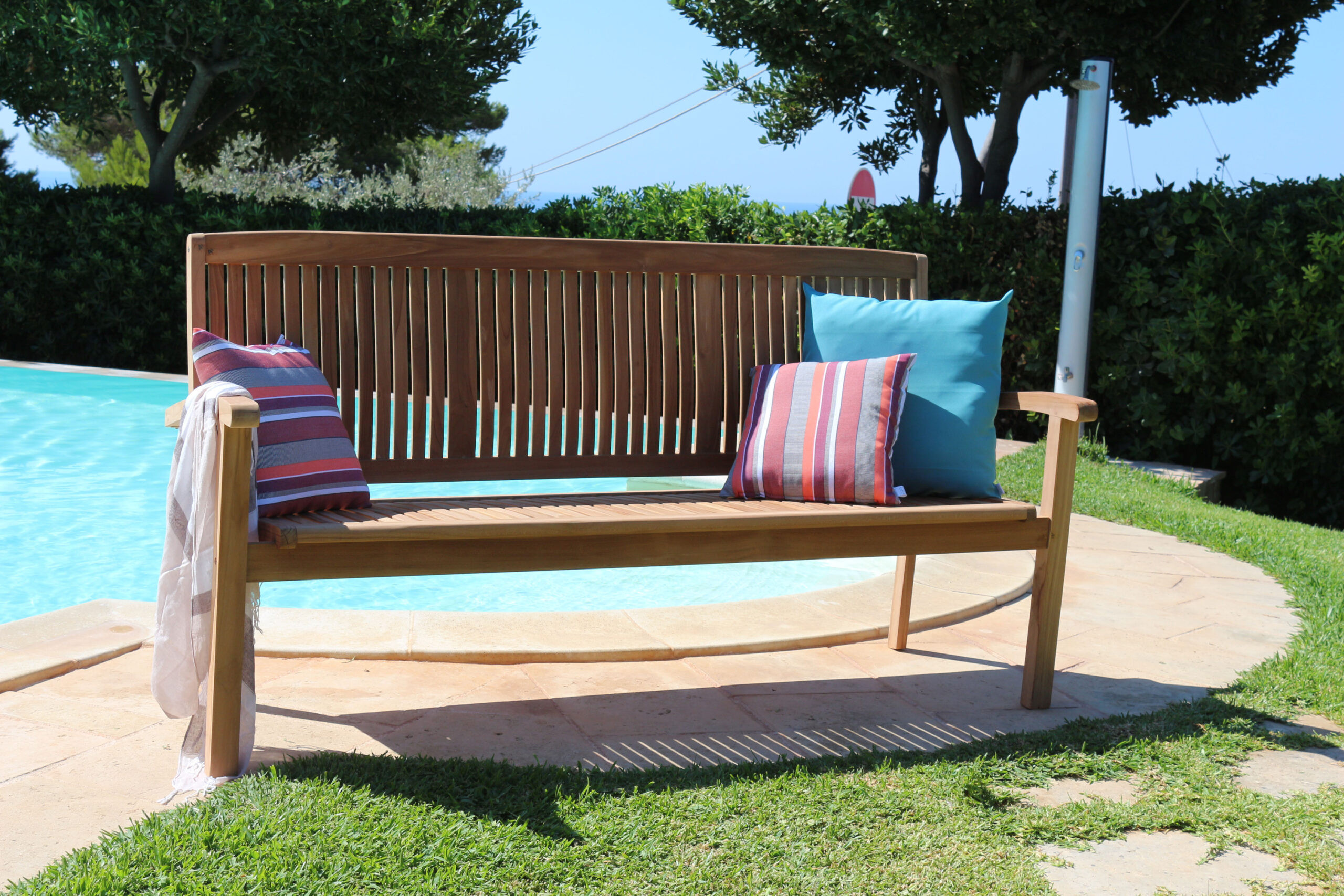 Il teak, con il suo caratteristico colore caldo caramello e il delicato profumo che ricorda i sentori del cuoio, conferisce alla panca un aspetto naturale e particolarmente elegante. Questo legno tropicale è molto apprezzato nell’arredo outdoor per le sue straordinarie proprietà: la presenza di oli naturali lo rende altamente resistente all’umidità, alla pioggia e agli agenti atmosferici, garantendo una lunga durata nel tempo senza perdere la sua bellezza.