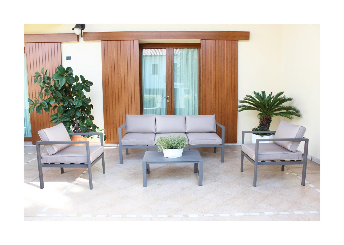 Salotto da giardino in alluminio AVANANAS divano 3 posti CM 184 2 POLTRONE colore TAUPE
