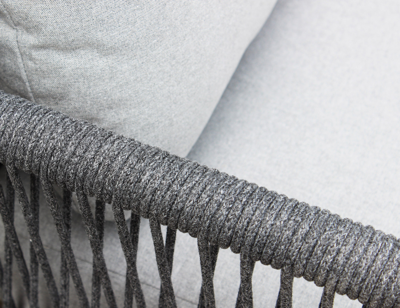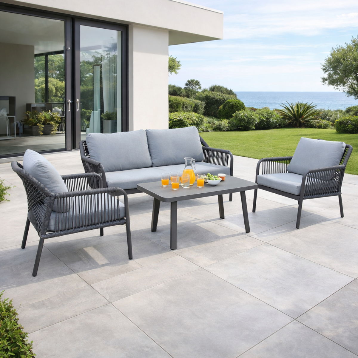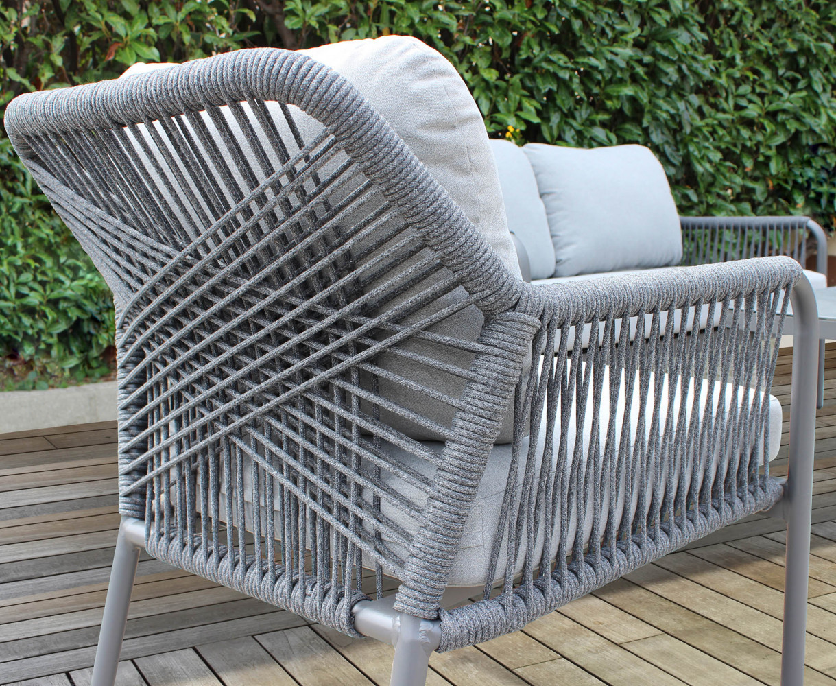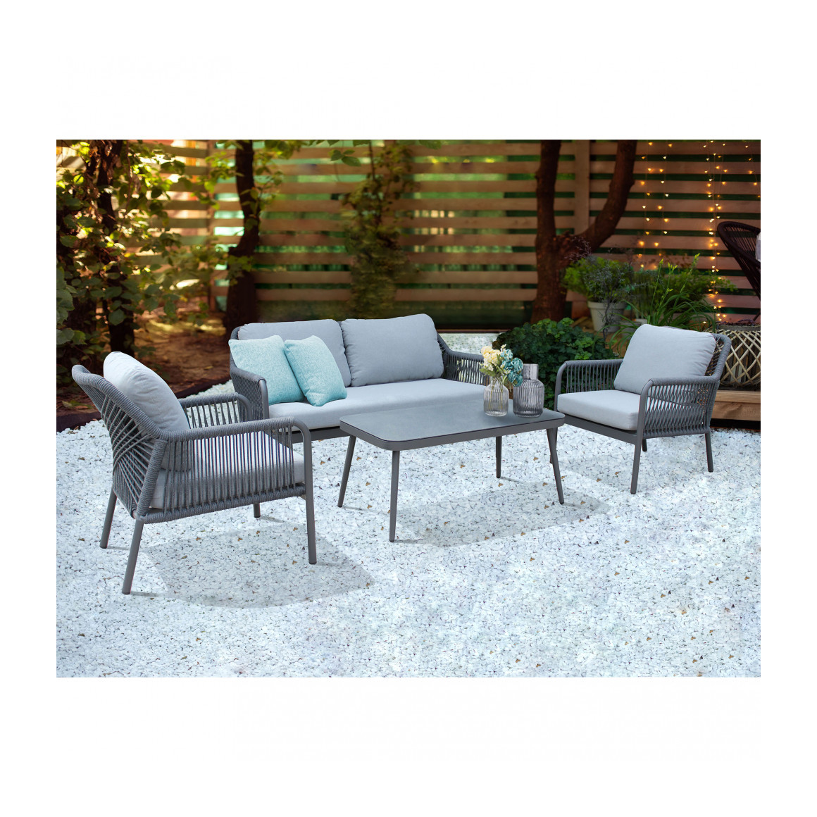 SALOTTO da giardino MADEIRA 2 P in alluminio verniciato ANTRACITE Corda Sintetica composto da divano a 2 posti 2 poltrone e tavolino in vetro