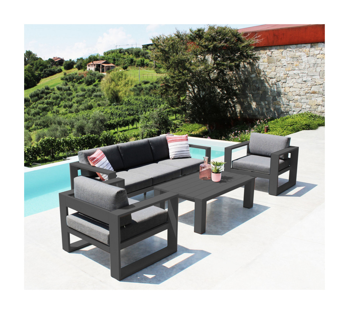 Salotto da giardino KNOXVILLE IMPERIALE PLUS in alluminio e polywood da 5 posti ANTRACITE