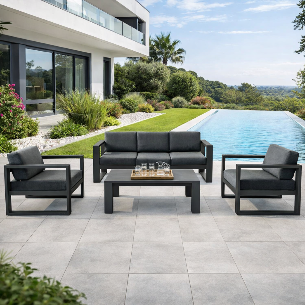 Un salotto da giardino solido, elegante e confortevole, pensato per chi desidera un arredo outdoor di qualità superiore, capace di unire design, funzionalità e affidabilità nel tempo.