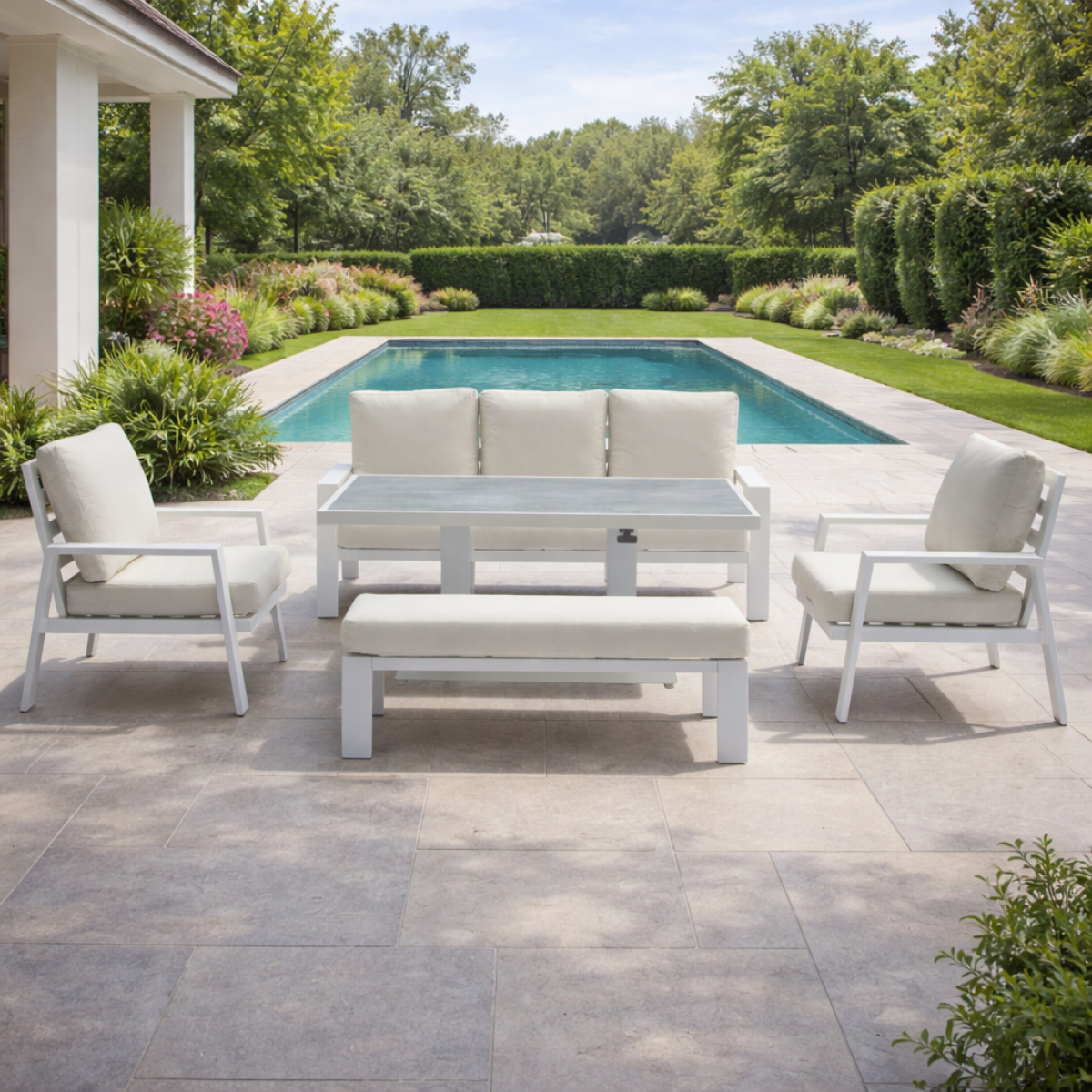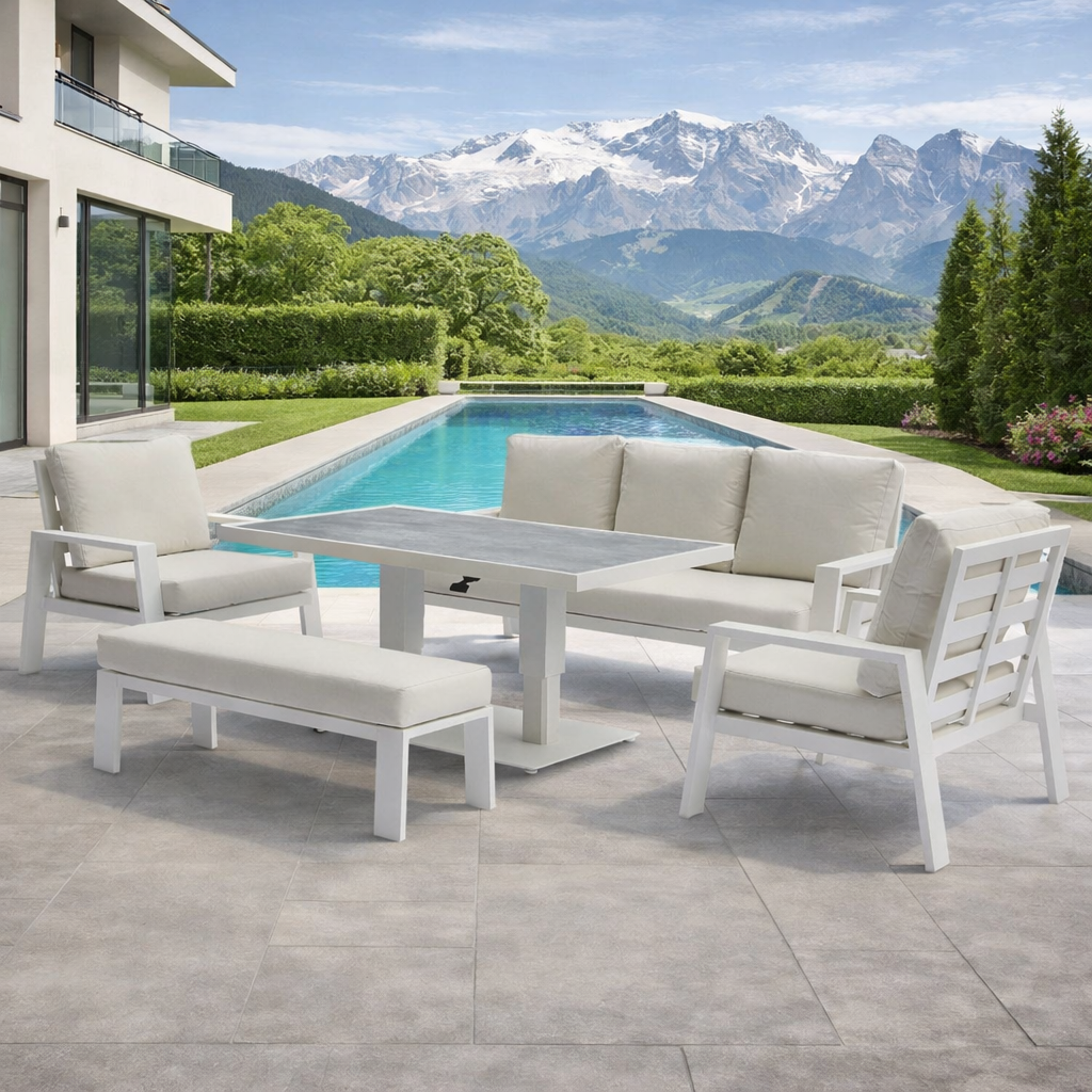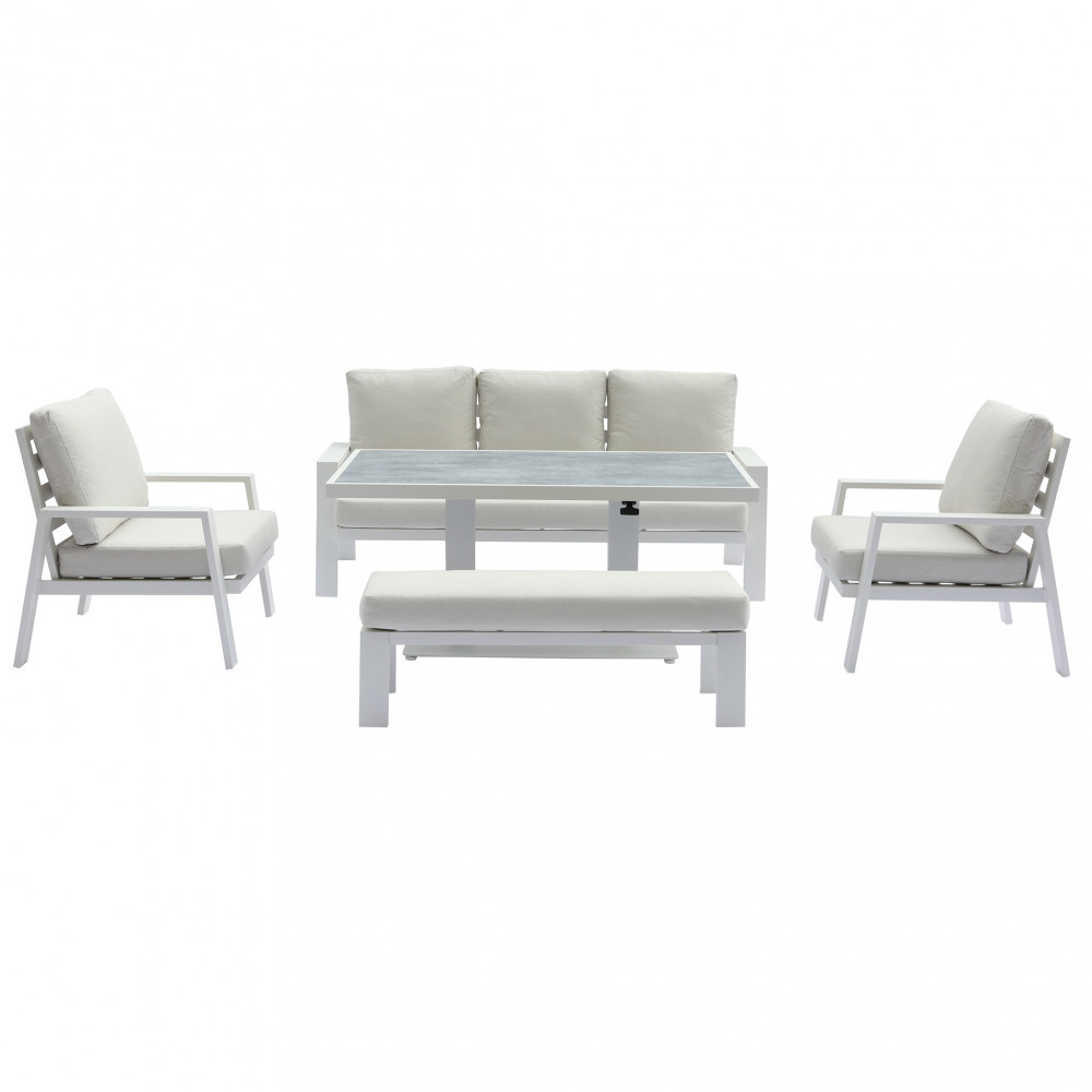 Salotto da giardino SALOTTO RABAT VANESSA IMPERIALE 3 POSTI con divano 3 posti e panca in alluminio col BIANCO