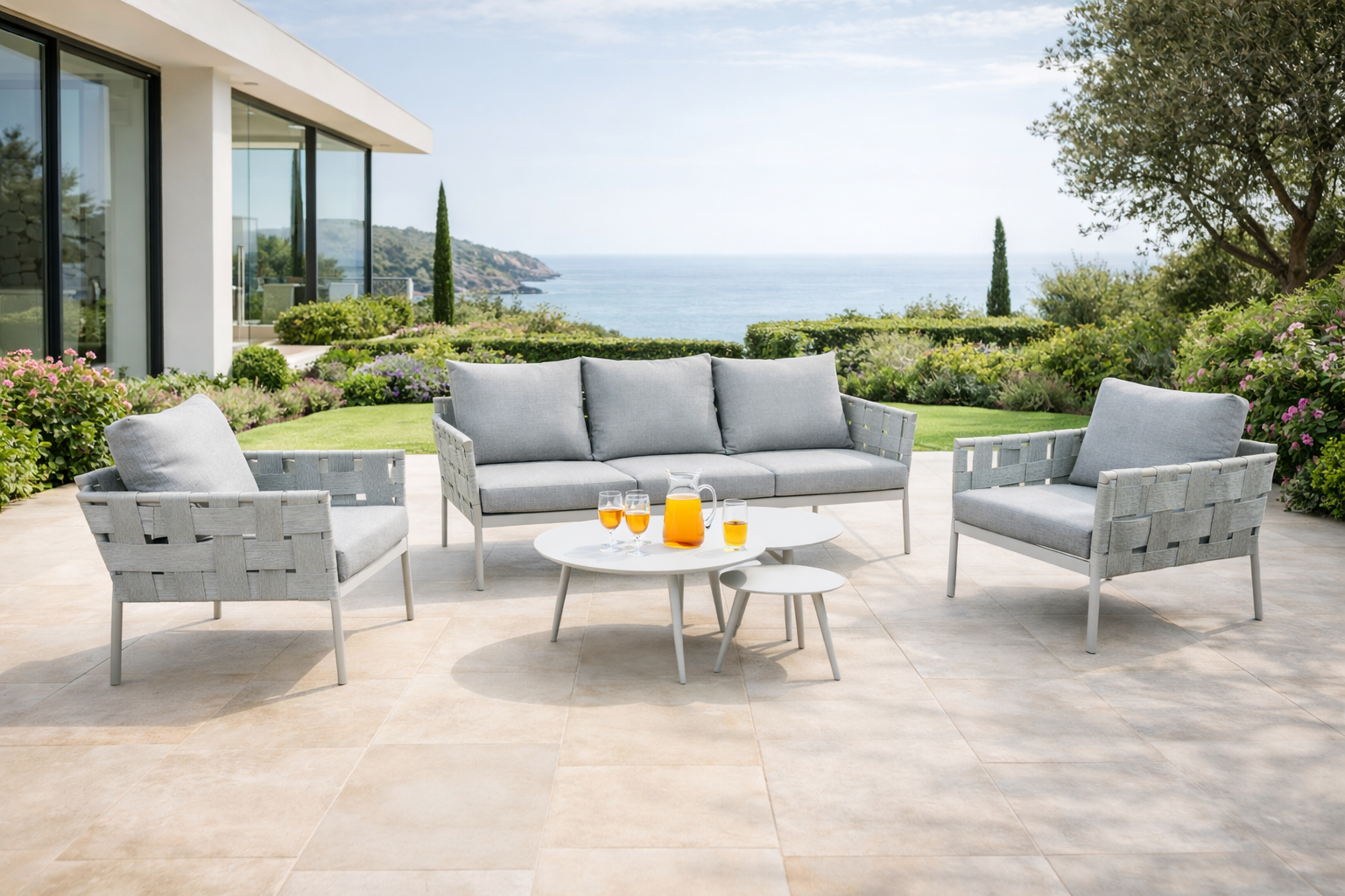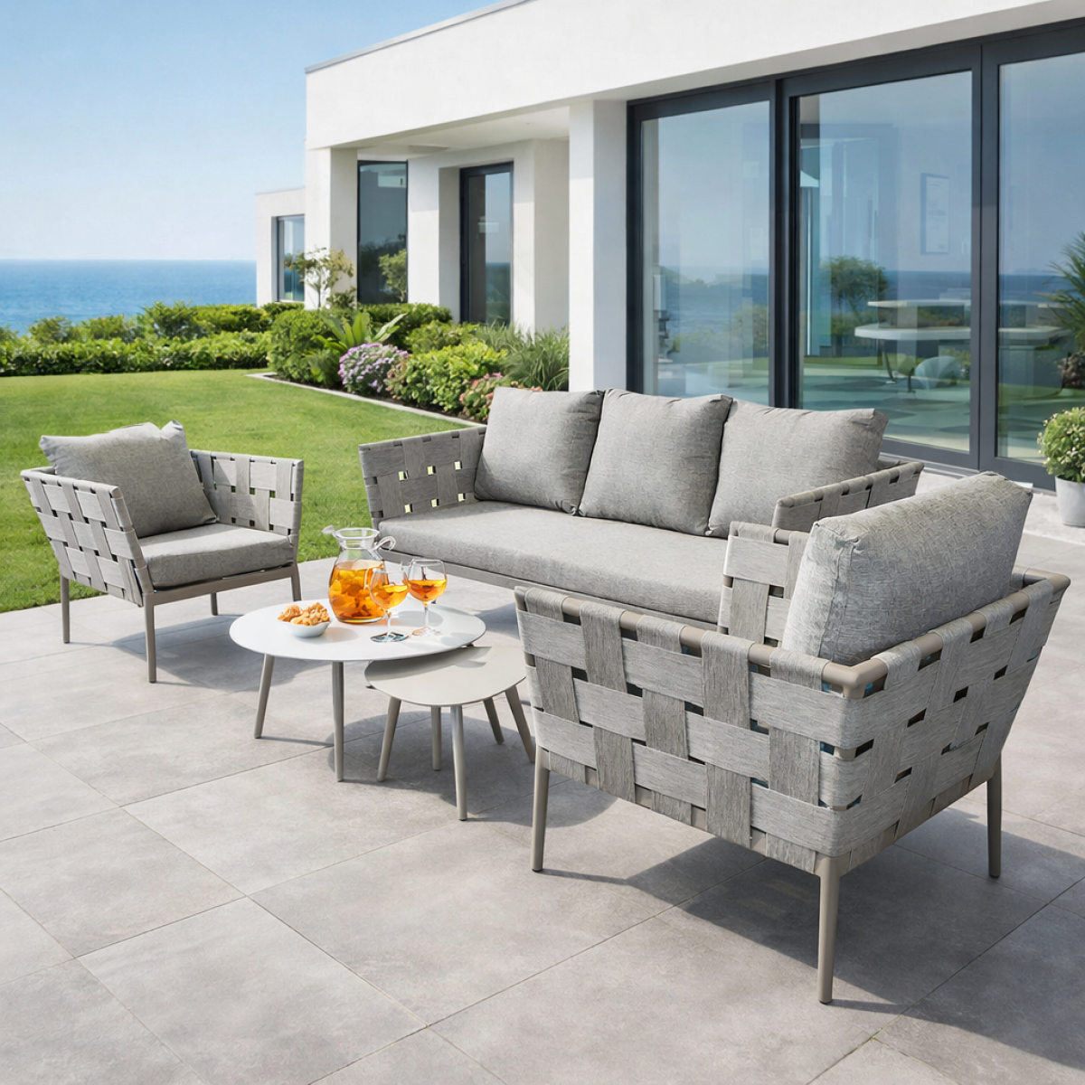 Con il suo design moderno e raffinato, è la soluzione ideale per creare una zona relax elegante all’aria aperta. Il set si adatta perfettamente a qualsiasi contesto: giardino, terrazza, veranda o persino ambienti interni come soggiorni e spazi lounge.