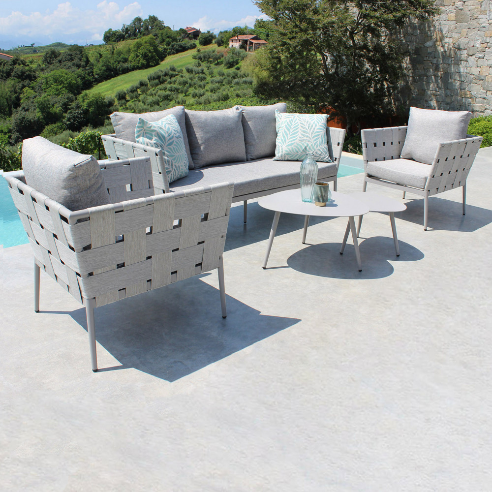SALOTTO da giardino DAKAR 3 Posti alluminio verniciato TORTORA 2 poltrone 2 tavolini