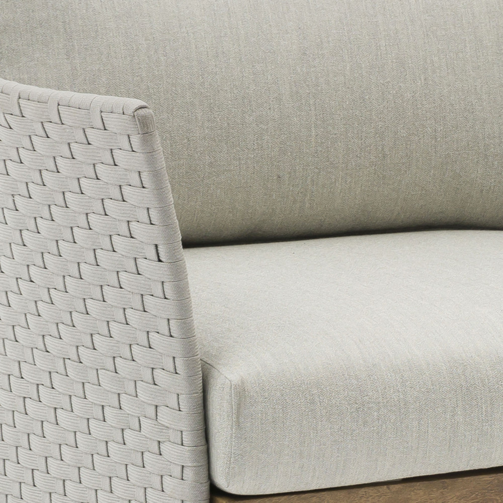 Il salotto è completo di cuscini idrorepellenti con spessore 15 cm, studiati per offrire una seduta morbida, confortevole e adatta all’uso esterno prolungato.